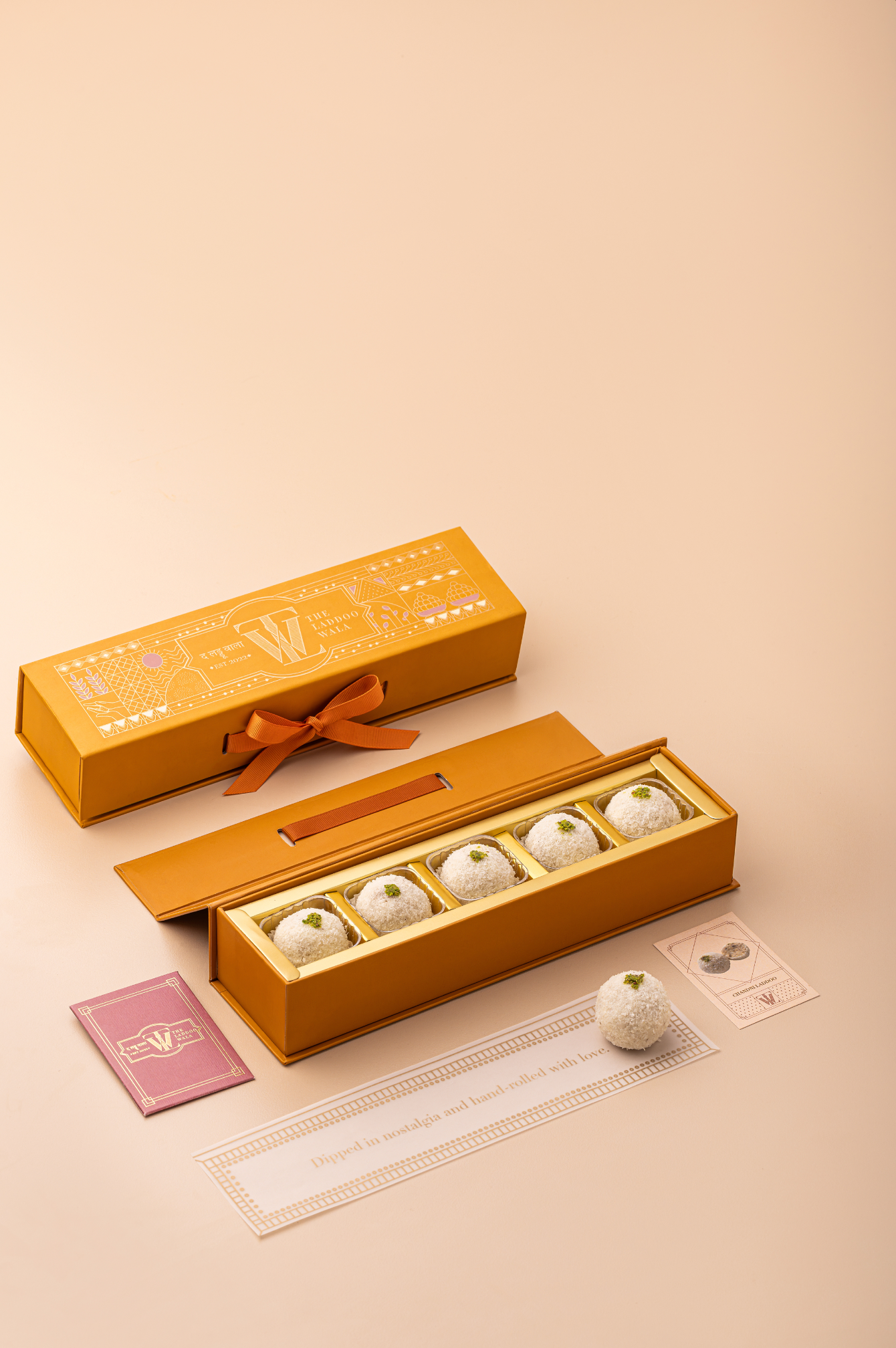 A bite of the sweets inside this box will take your taste buds on a flavourful journey with impeccable textures. Each Chitrakala box celebrates the country’s diverse culinary heritage, and this one is no different. Inspired by India’s traditional art forms, we believe that crafting a classic coconut laddoo, hand-rolled in small batches, is an art in itself.