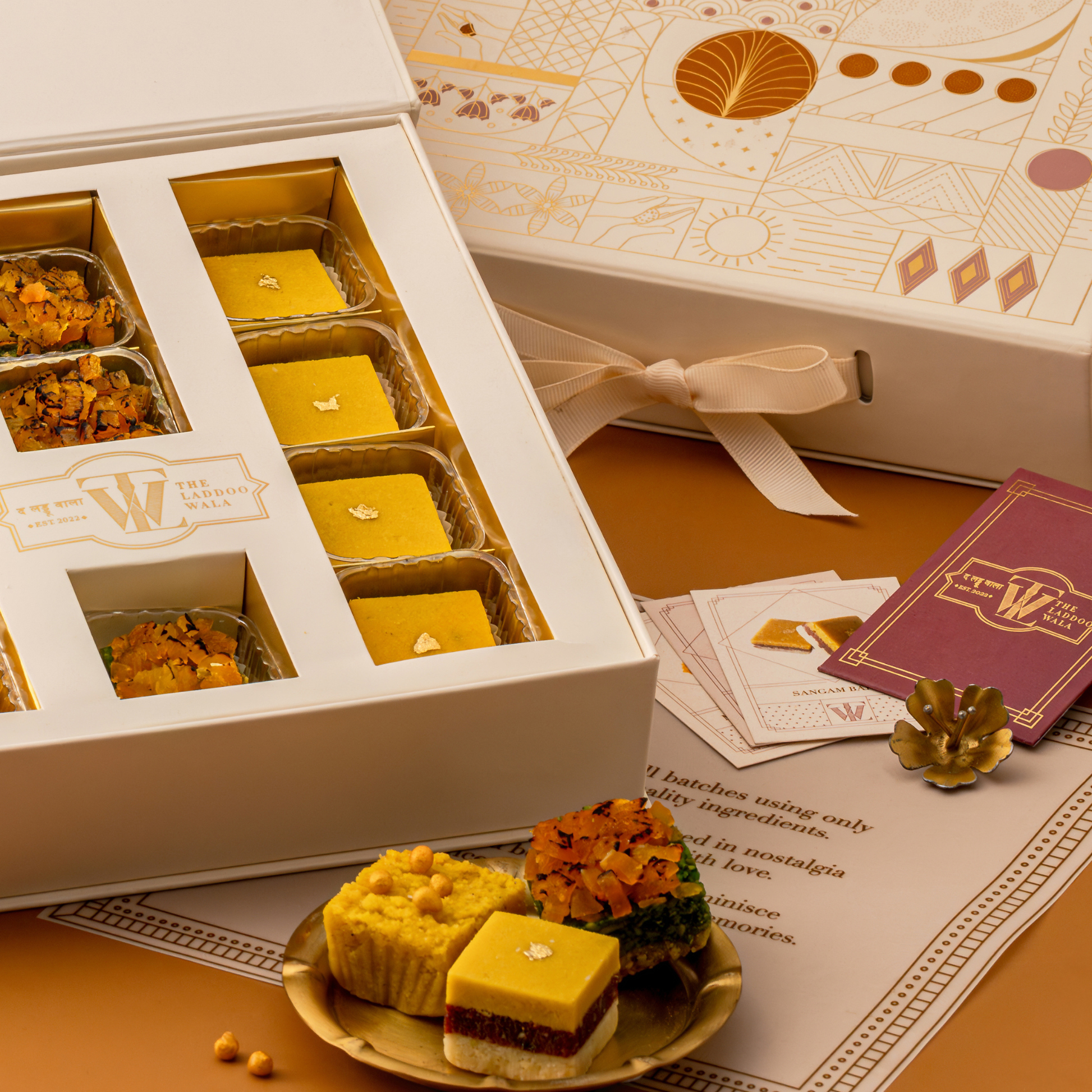 Named after a symbol of beauty, royalty, and grace, this box is a treasure filled with flavours crafted in the same spirit. Designed as a thoughtful mithai gift box, it brings together textures and tastes that feel both familiar and refined. While its artistry makes it a visual delight, the assortment inside - from handcrafted sweets to our signature assorted laddoo box selections - offers a luxurious experience for the palate. Perfect for celebrations, weddings, or as a festive gift box, it carries the quiet elegance of TLW in every detail.
