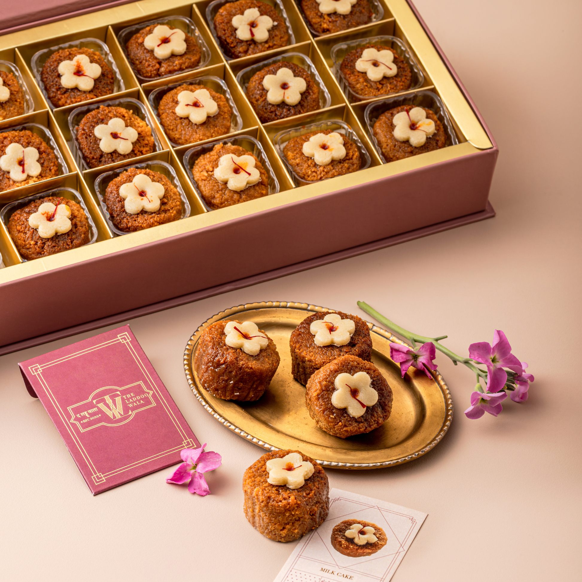 Milkcake: Full cream milk cooked on slow fire for hours with unrefined sugar, set overnight in the form of a cake load. This traditional yet simple sweet is pure bliss. Premium Mithai made with pure ghee and carefully sourced raw ingredients.