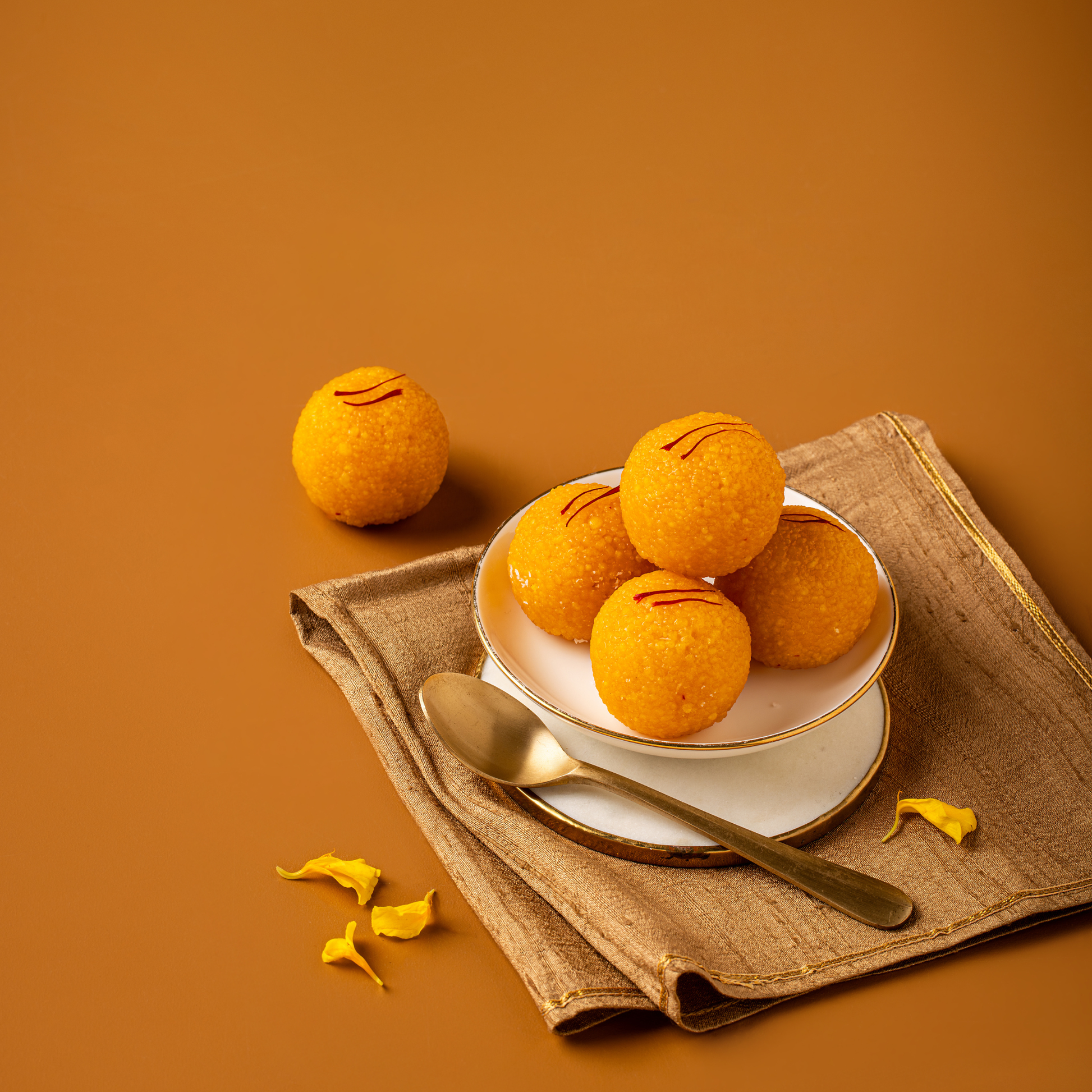 Each of the 11 pieces of Motichoor Laddoos sits at the intersection of movement and magic, where reminiscent flavours are crafted into sweet, joyful experiences. The movement of delicately shaping crushed glistening pearls into magical spheres of sumptuous softness is a dance our seasoned halwais know all too well and one they perform with love and elegance.