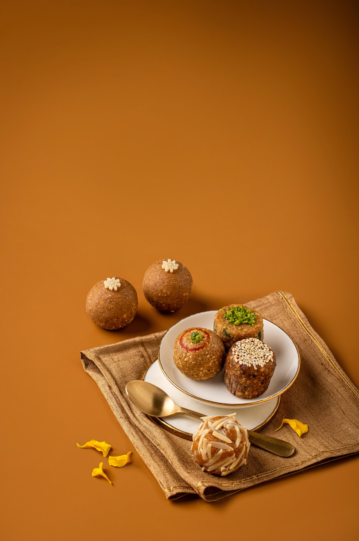 Dates & Walnuts: The natural sweetness and texture of Omani dates paired with the exceptional taste of fine walnuts makes this laddoo a delight for the refined palate.