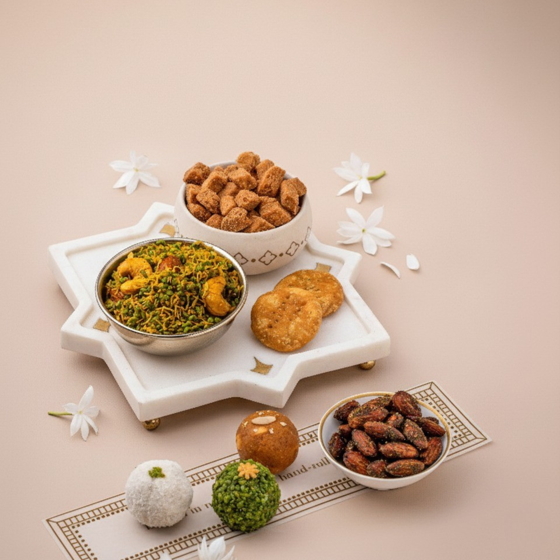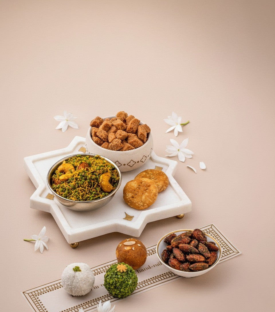 Named after a sacred flower that plays a significant role in Indian prayer rituals, our Palash hamper is steeped in tradition and crafted to mark the beginning of your festivities.